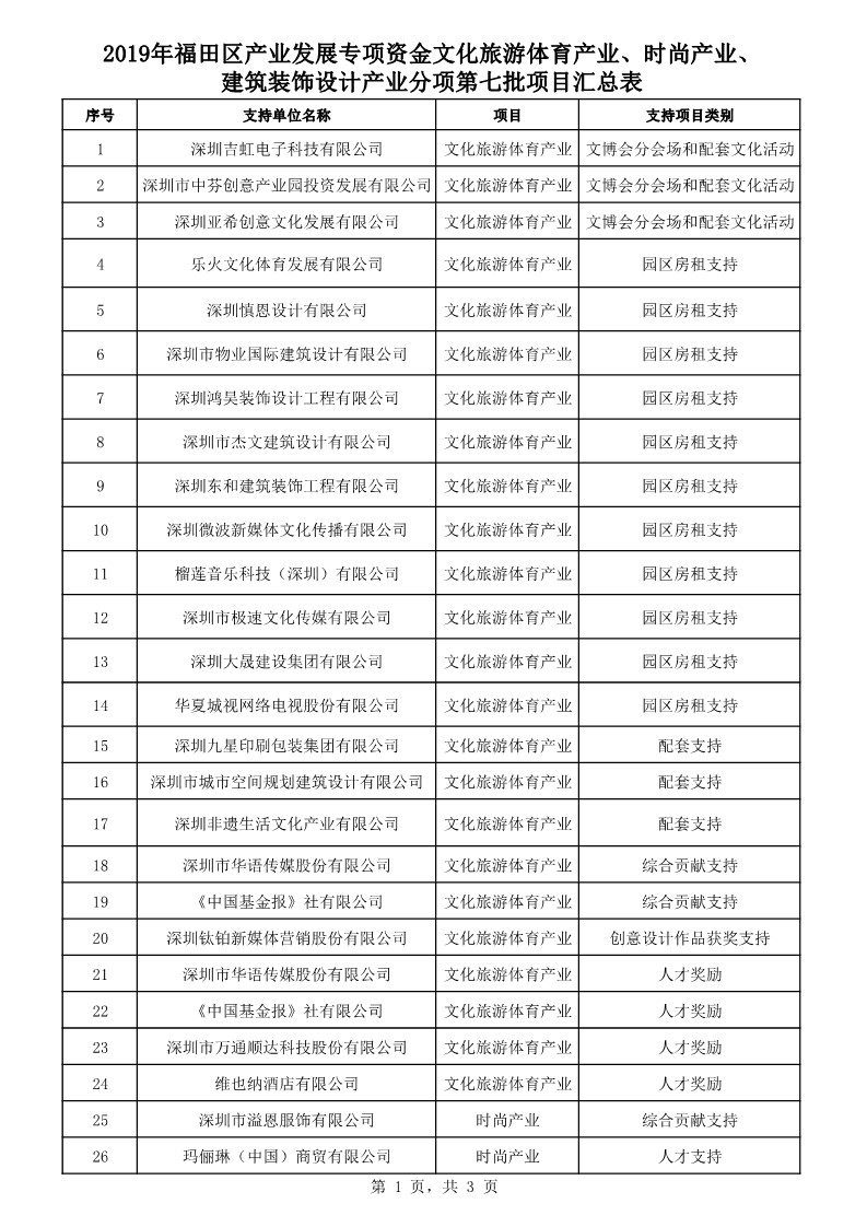 2019年福田區(qū)產(chǎn)業(yè)發(fā)展專項(xiàng)資金文化旅游體育產(chǎn)業(yè)、時(shí)尚產(chǎn)業(yè)、建筑裝飾設(shè)計(jì)產(chǎn)業(yè)分項(xiàng)第七批支持企業(yè)及項(xiàng)目的公示