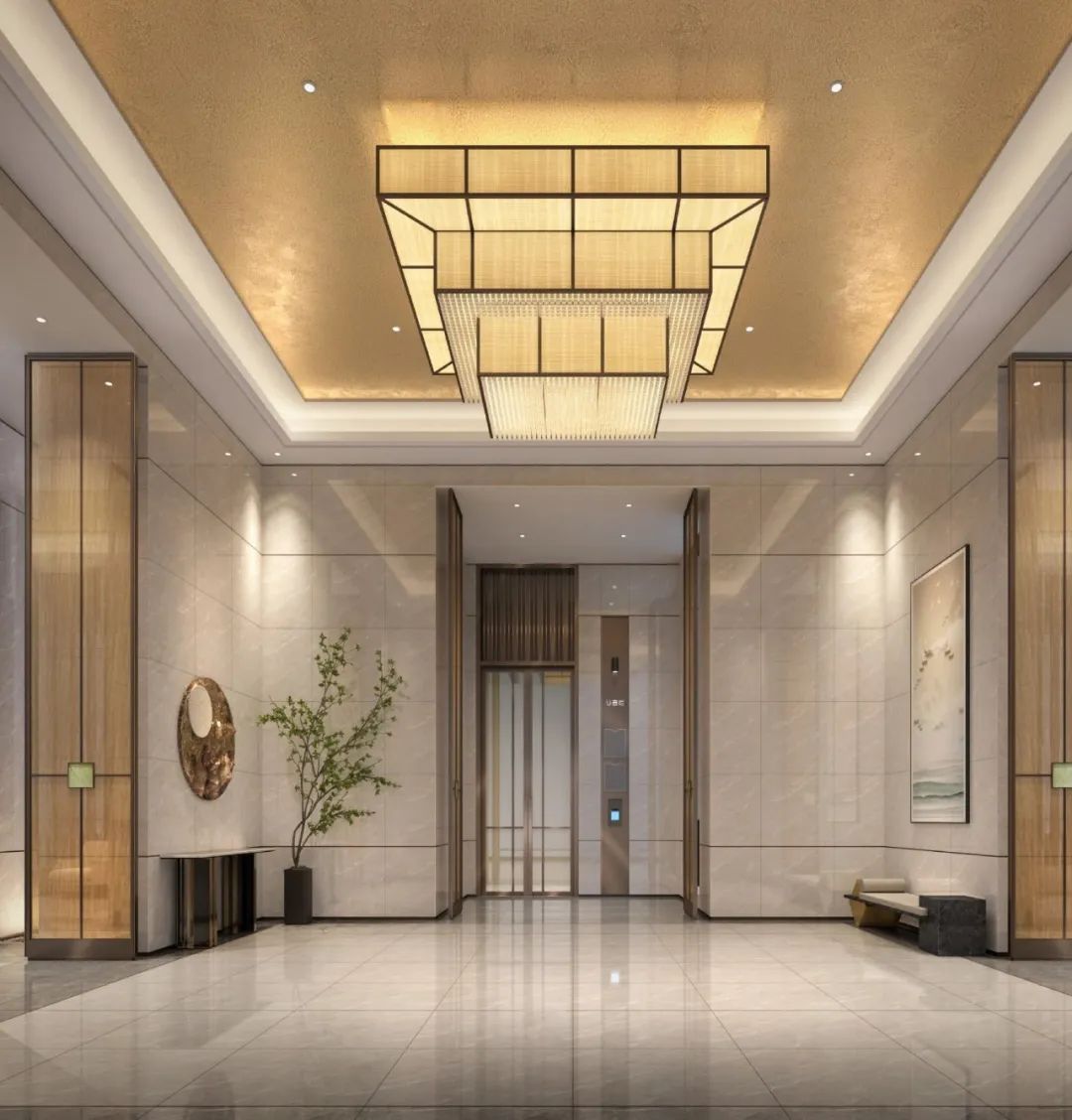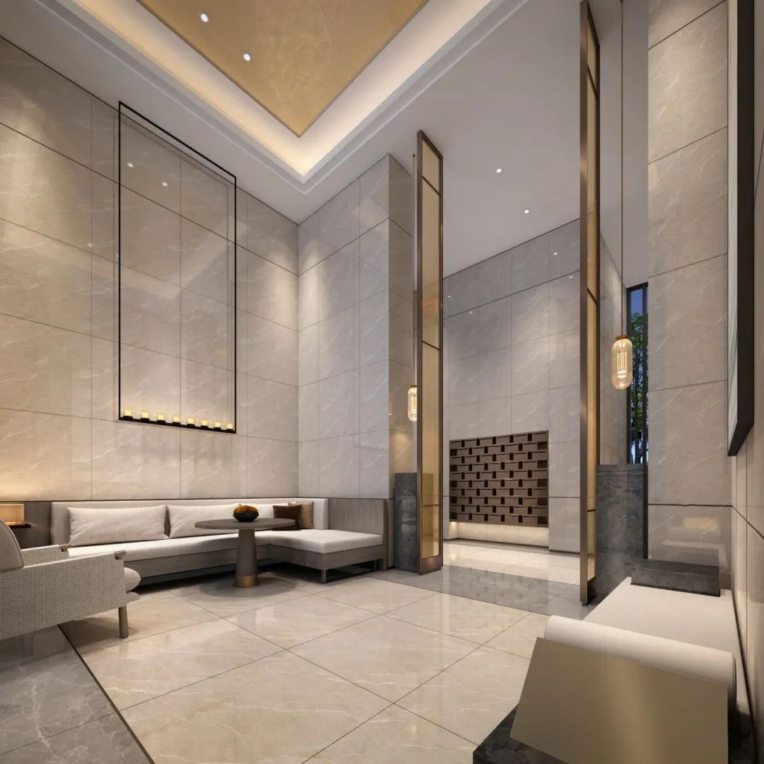 入戶大堂打造空間秩序和儀式感,設(shè)計(jì)師通過(guò)對(duì)光影的創(chuàng)造引入,呈現(xiàn)浩然之氣,全新的藝術(shù)審美給住戶帶來(lái)更多的視覺(jué)享受。將景觀融入室內(nèi),強(qiáng)調(diào)室內(nèi)外互動(dòng)意境,讓人充分體驗(yàn)到室內(nèi)空間與自然環(huán)境的融合。