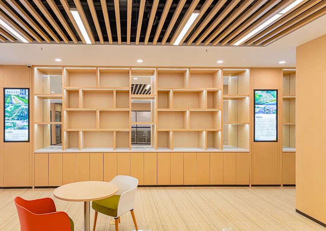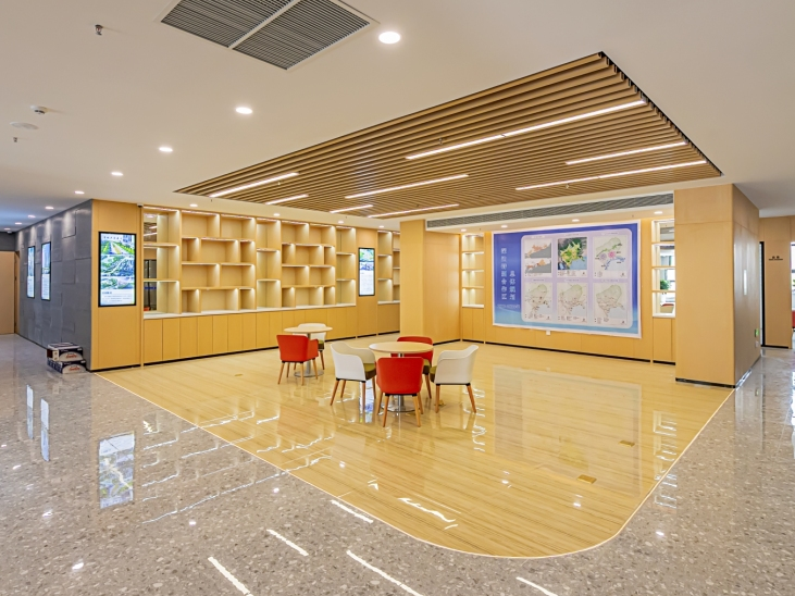 項目結(jié)合深汕特別合作區(qū)建筑工務署實際業(yè)務需求及辦公特色,進行各個功能區(qū)域的布局劃分,挖掘空間使用潛力,讓空間發(fā)揮出最大的價值。項目在設計上注重秩序感,采用對稱均衡美的形式來處理,利用簡潔的建筑手法,在規(guī)劃燈光、音響窗簾等中應充分考慮其舒適性和適應性。整體裝飾中明快的色調(diào)可給人一種愉快心情,給人一種潔凈之感,同時明快的色調(diào)也可在白天增加室內(nèi)的采光度。