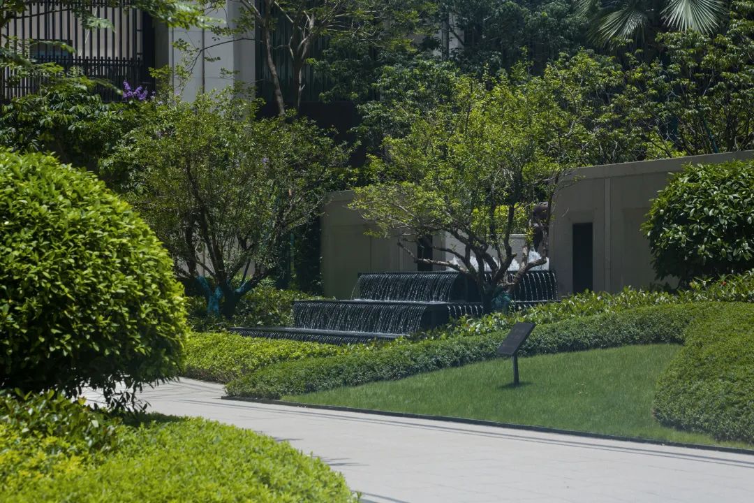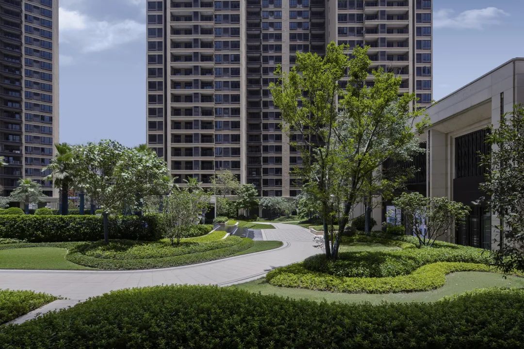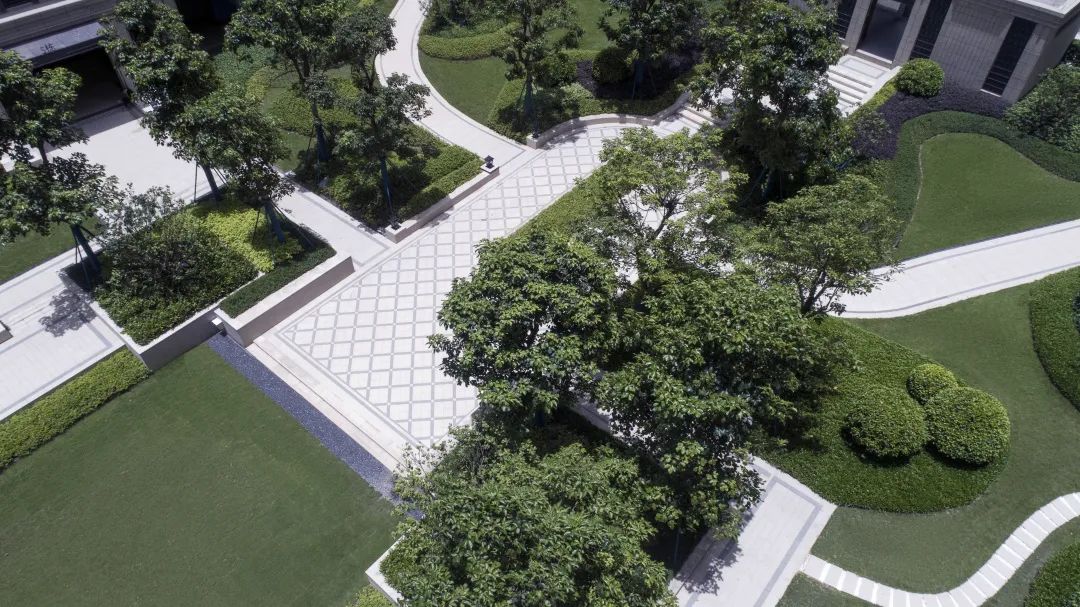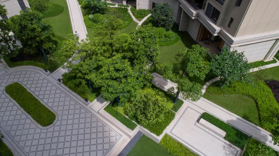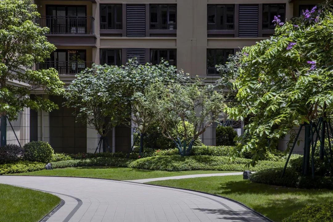 禮序而下,綠意徜徉在此,錯落的空間為游園增添了趣味,林蔭包裹著棲居的人,遠處草坪開闊,陽光透過樹葉輕輕灑下,樹影斑駁,微風拂過的是陣陣愜意。