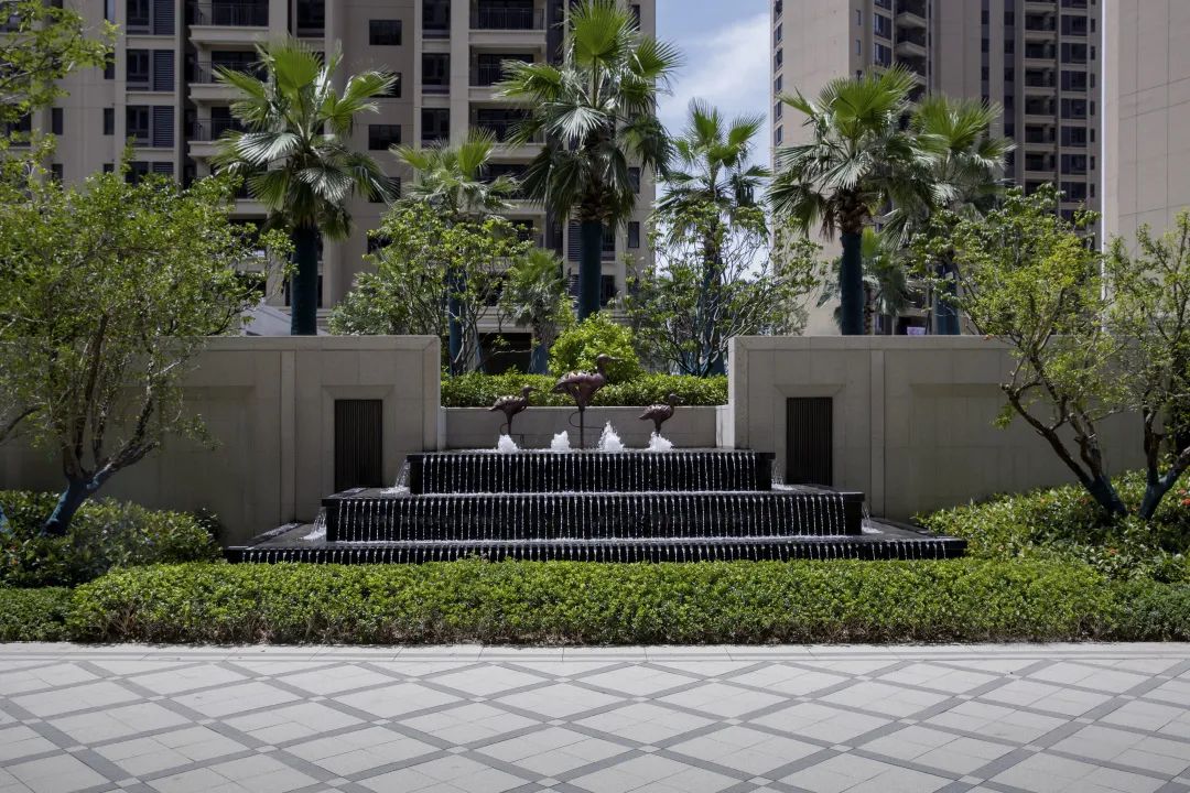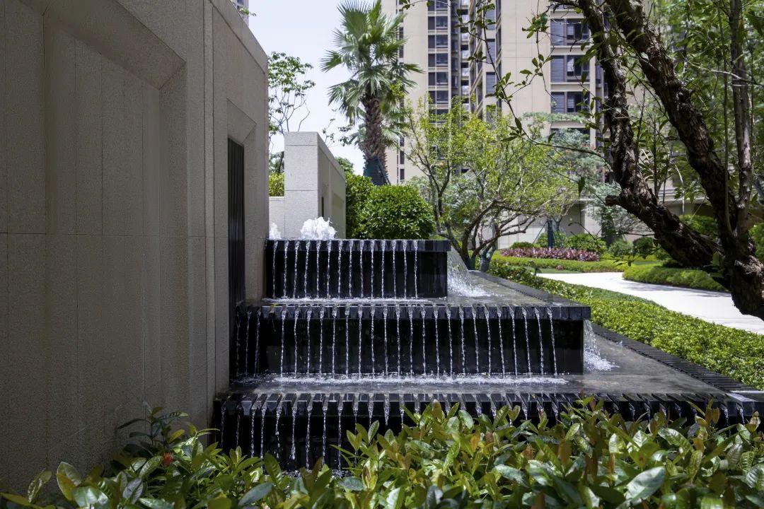 綠植層疊,高低錯落;流水婉轉,相映成趣。我們希望營造一個富有風情感、浪漫典雅、休閑活力、自由開放的居住氛圍。
